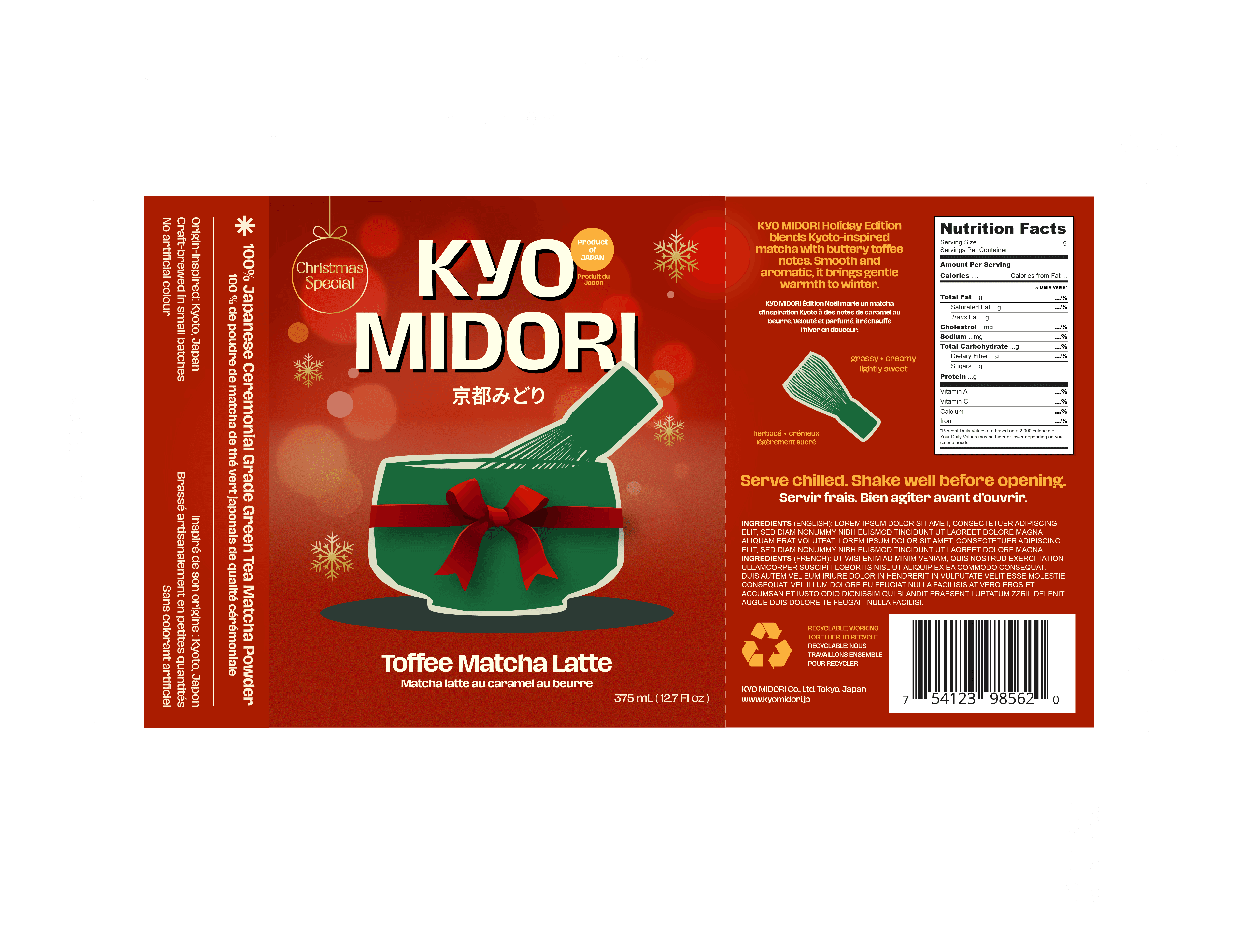 One of the main challenges was balancing multiple languages within a limited packaging space. Because the product is rooted in Japanese tea culture, I wanted to incorporate Japanese typography to preserve authenticity. At the same time, the packaging required English and French for clarity and market compliance.